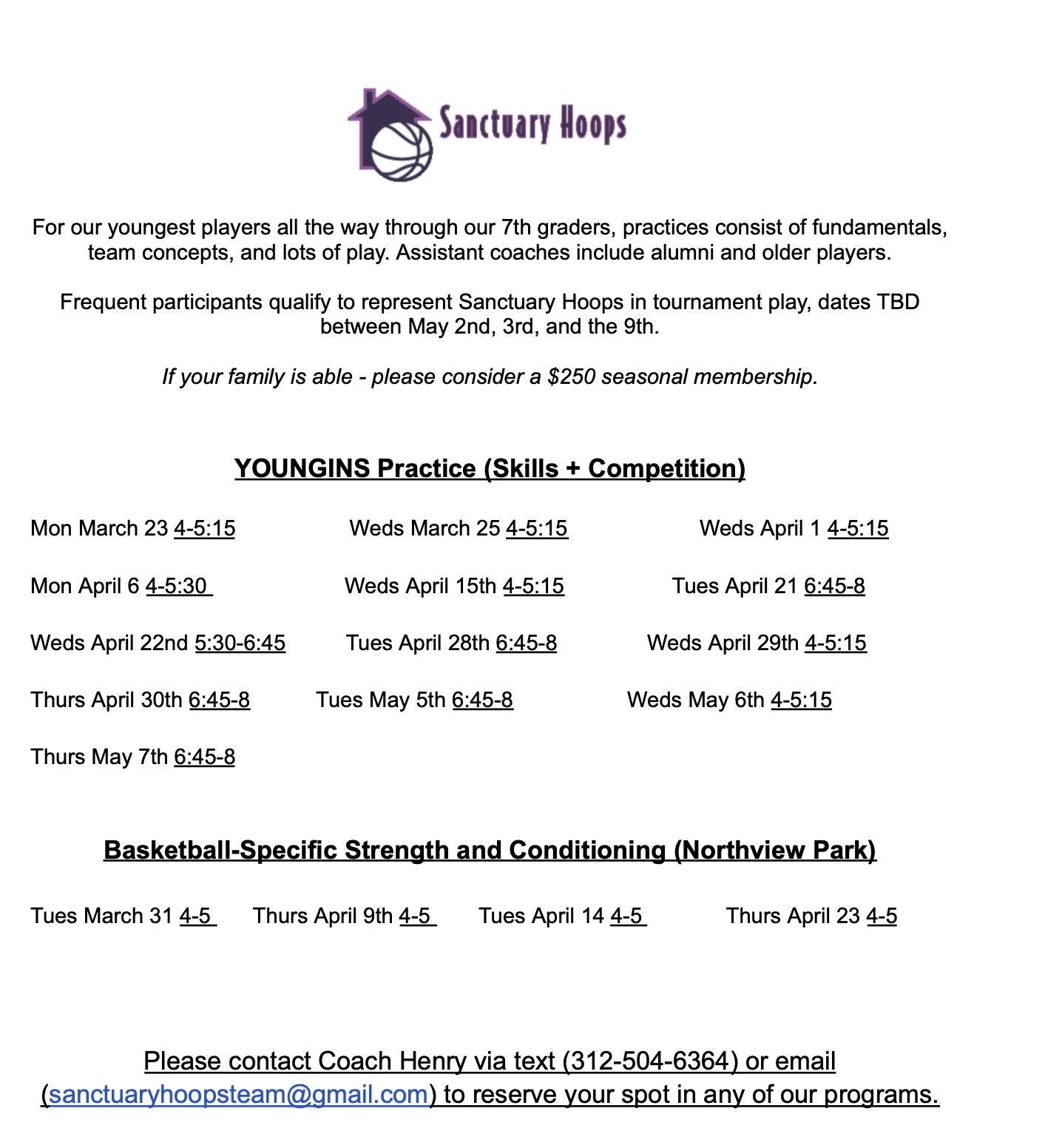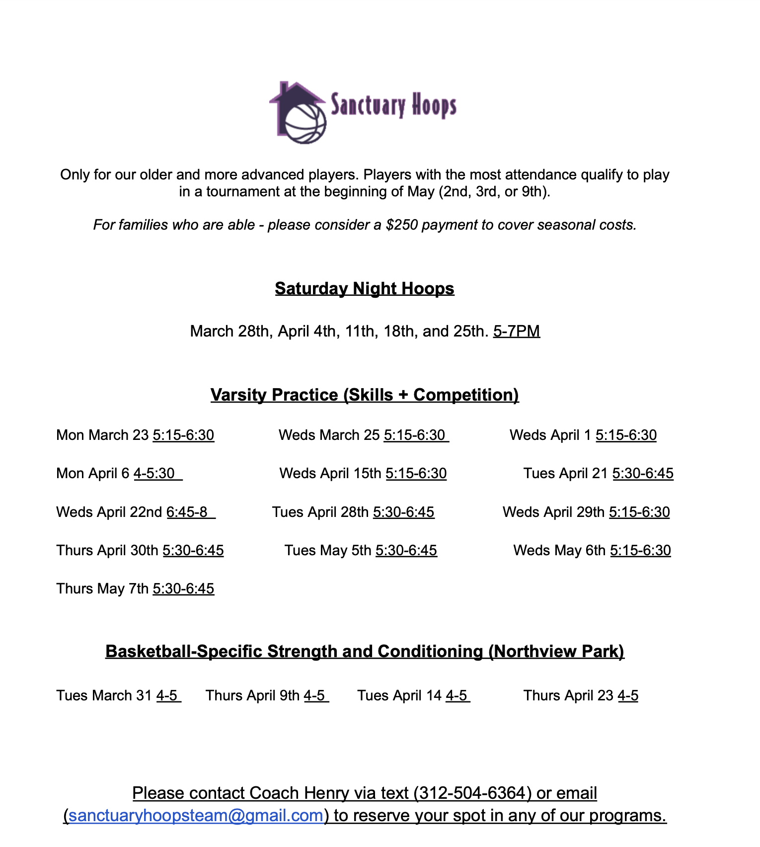 Contact sanctuaryhoopsteam@gmail.com for pay-what-you-can pricing. Does not apply to private training.